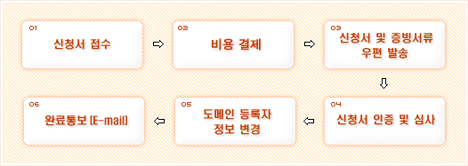 ※ 양도/양수의 경우 신청서 접수 및 심사를 거쳐 최소 7~10일이 소요되며, 등록자이메일변경신청은 신청서 접수 후 3~5일이 소요됩니다.